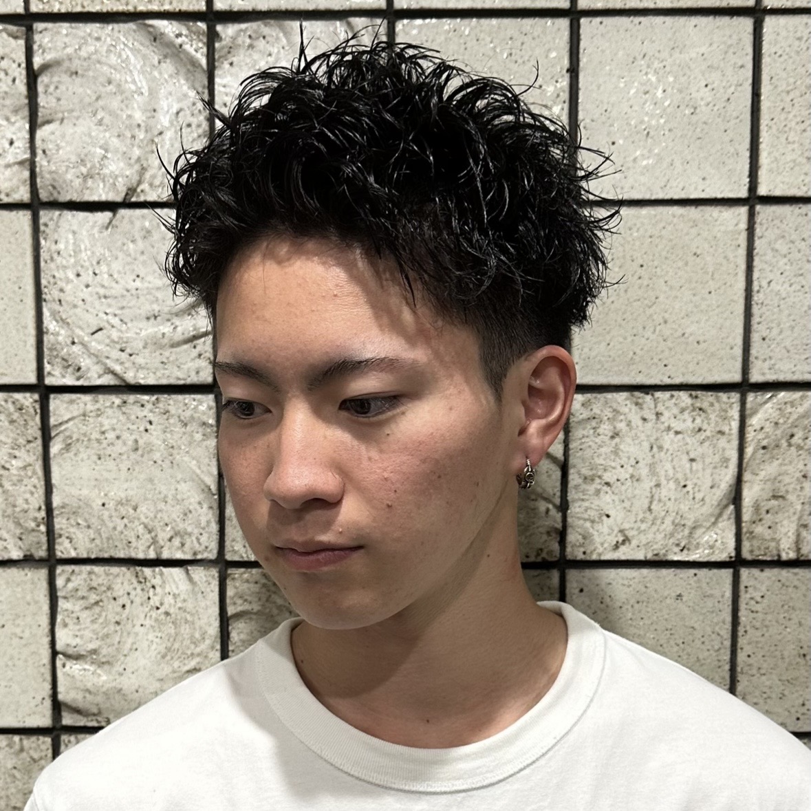 ツーブロックを入れつつも、厚みを残すことで刈り上げ感を抑えたスタイルです。横の広がりを抑えたい方に向いています。