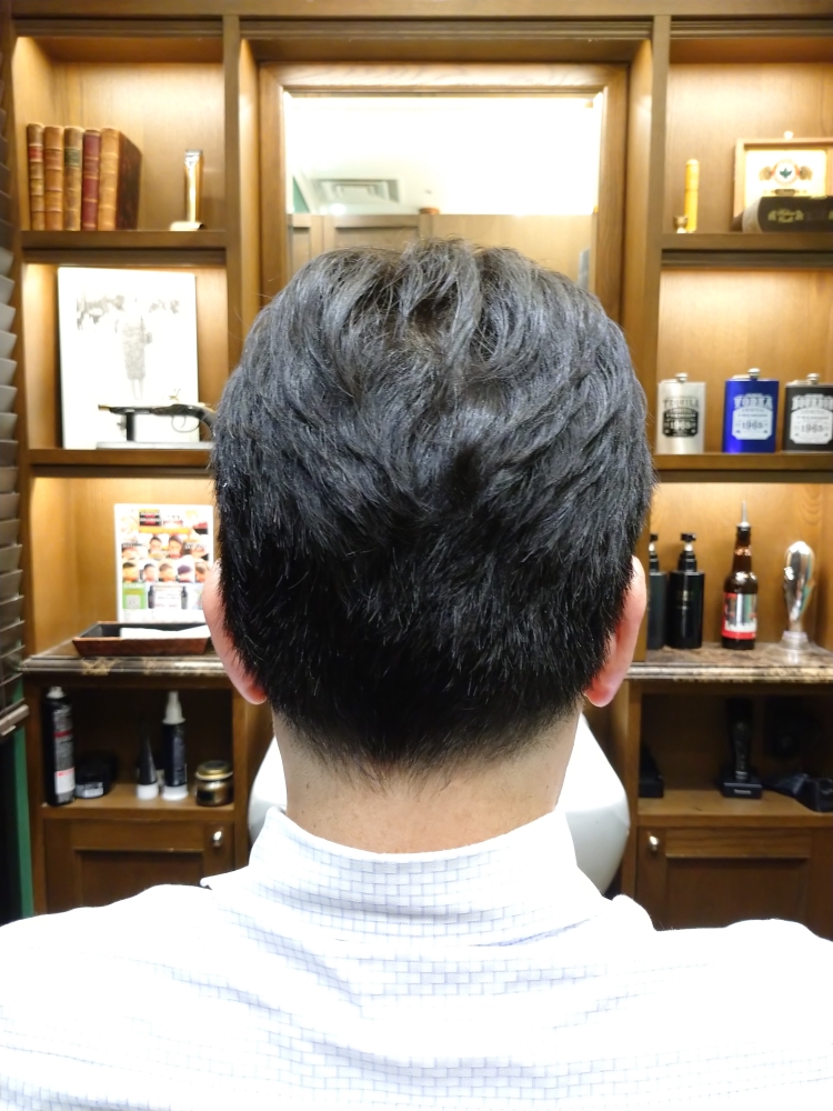 周りが地肌が透けないくらいに短くしました。