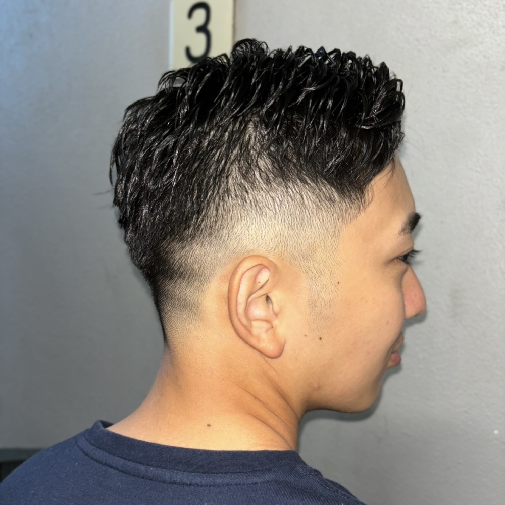 ナチュラルに73に分けて横後ろはフェードにしてます!