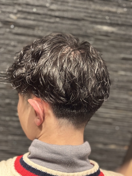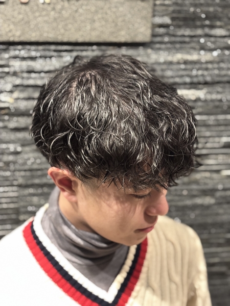 マッシュスタイルのツイストスパイラルパーマです!大きめのウェーブに動きのある無造作なパーマが特徴です!ムースで仕上げてパーマ感をより一層ひきたたせました!