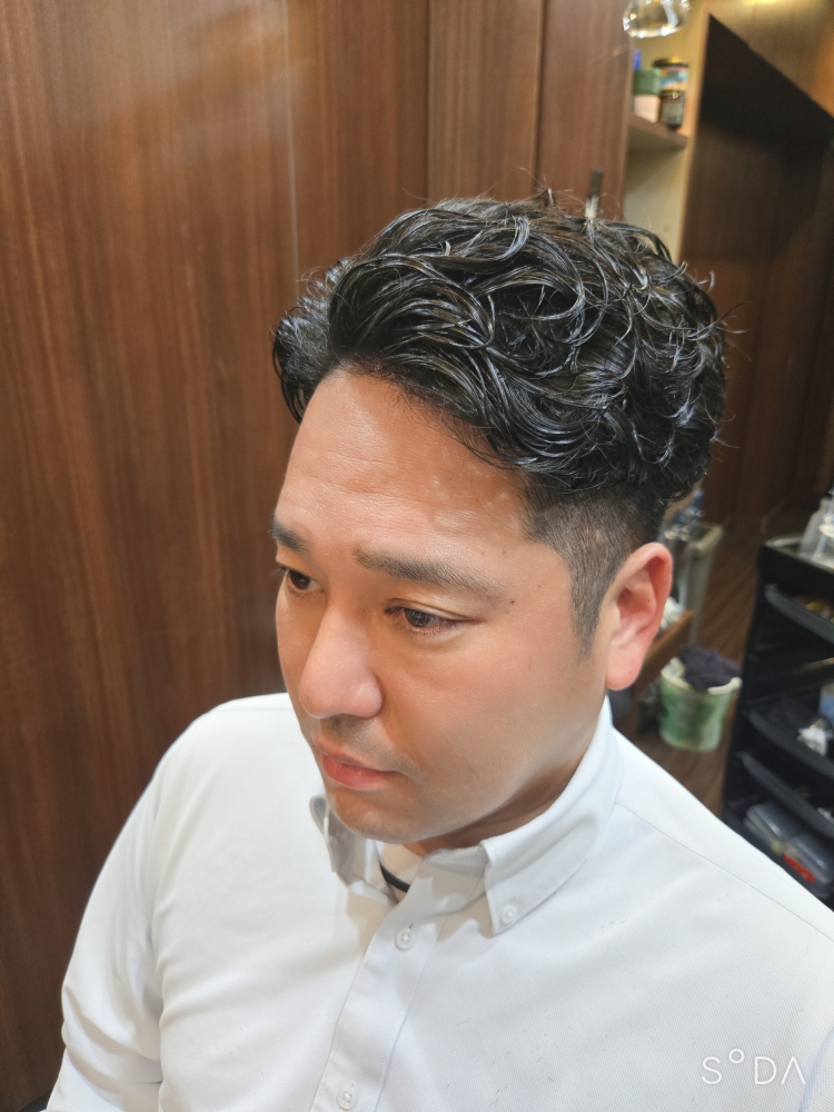 極道パーマといっても七三分けのようなビジネススタイルもいけます!