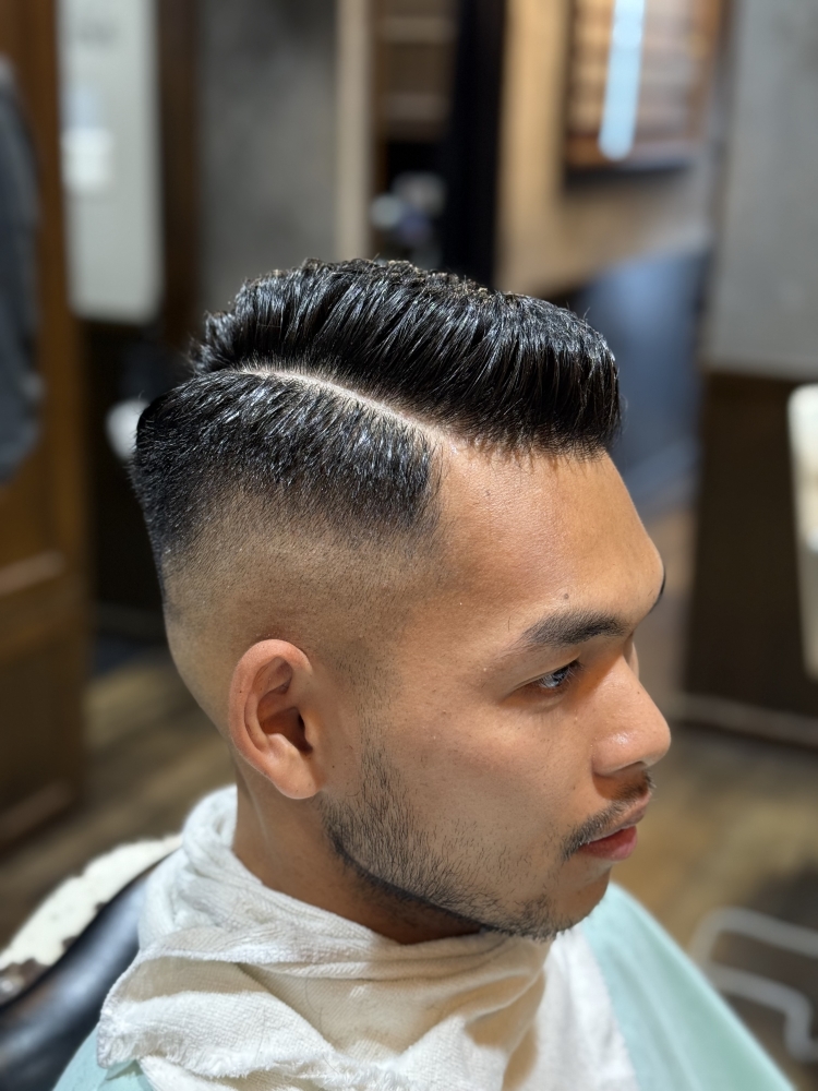 - 艶系の整髪料でバシッとラインで分けてやっちゃってください!