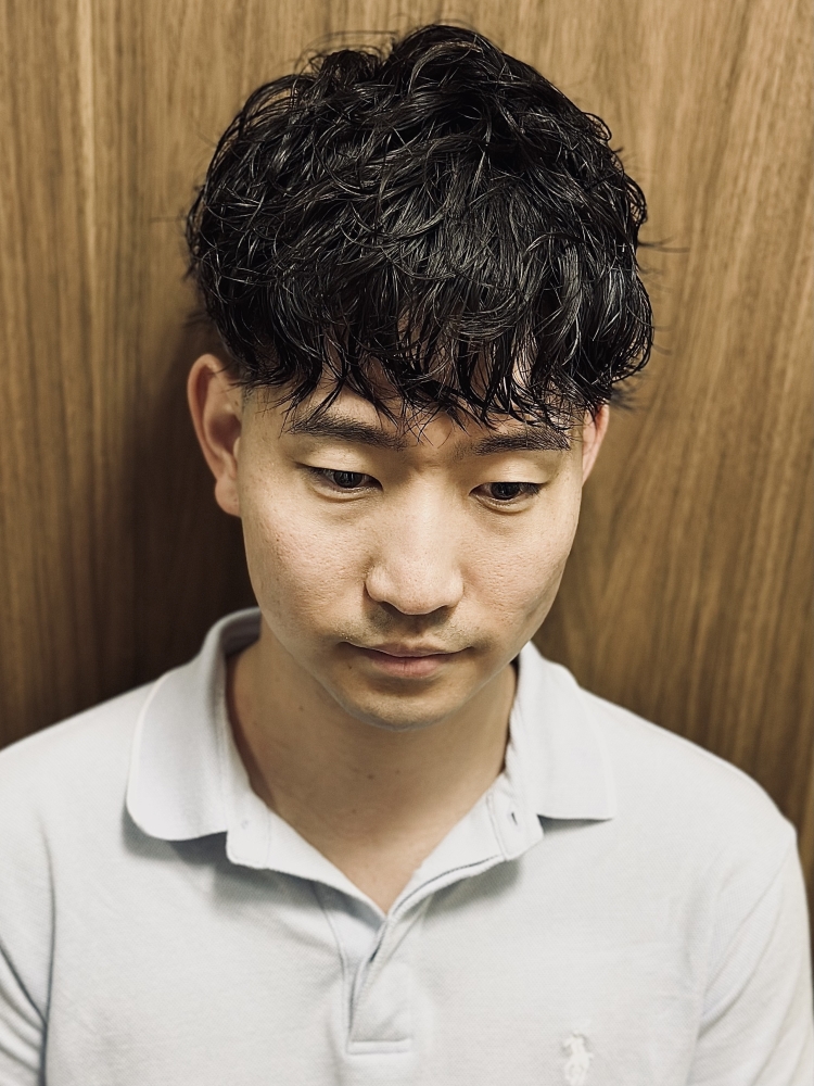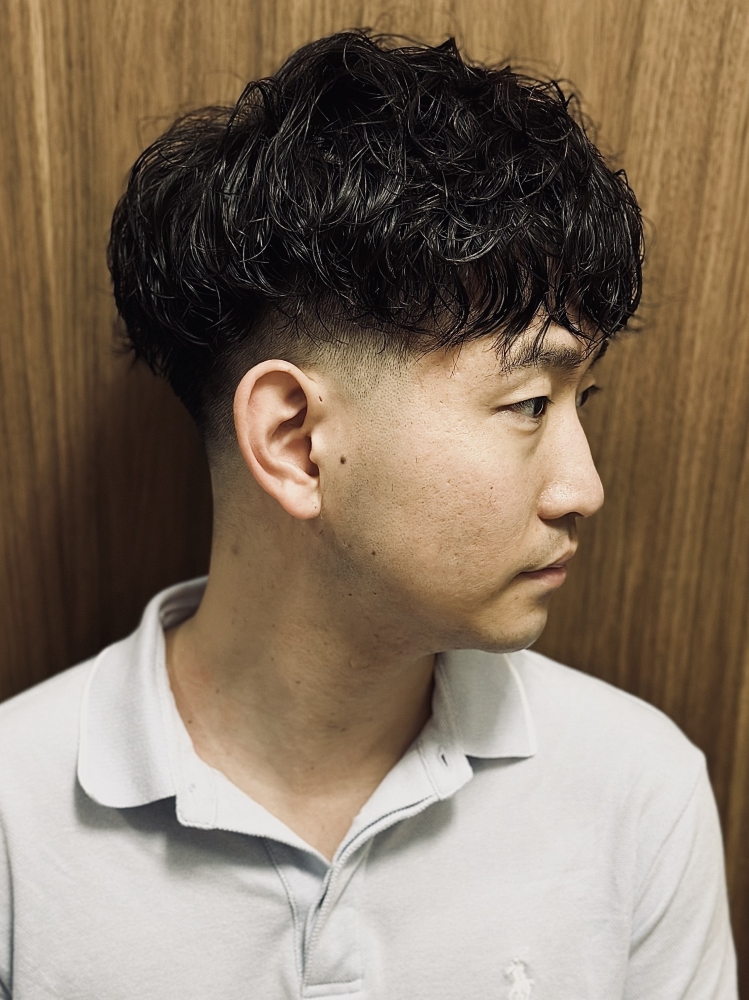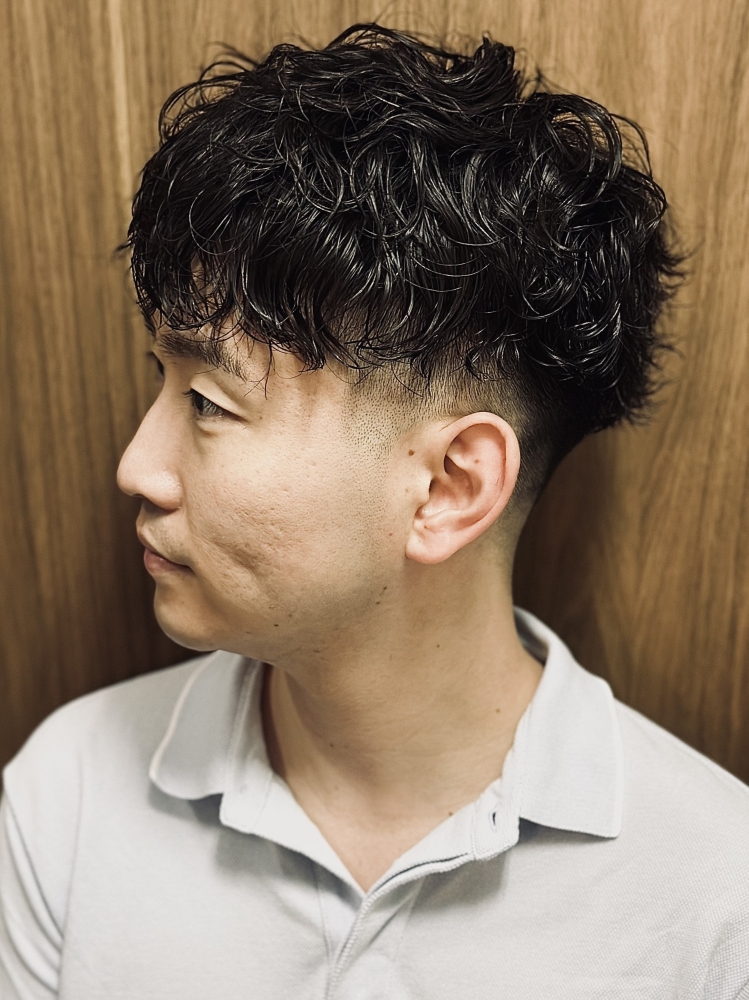 周りはスキンフェードのパーマスタイルです。無造作でセットしやすく仕上げてます!