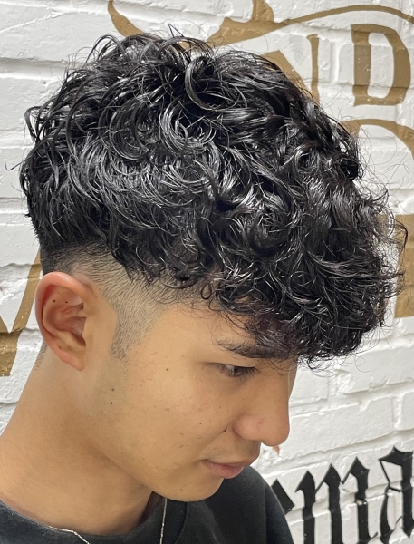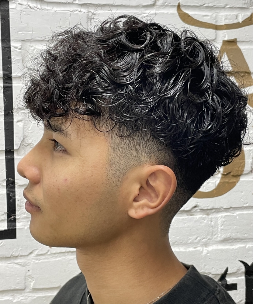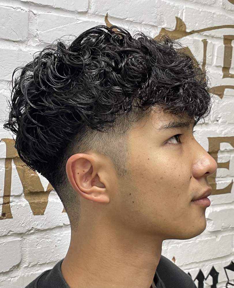サイドとバックをタイトに刈り上げ、トップに強めのカールを無造作にかけることで、ラフさと色気を兼ね備えた、海外風のこなれた印象を演出するスタイルです。