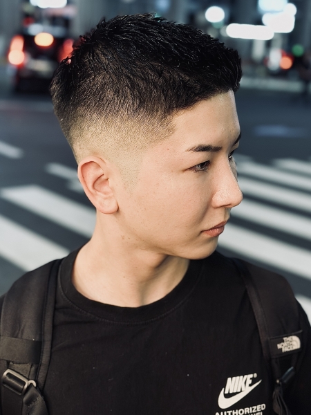 フェザーアップのスキンフェードスタイルです!メッシュコームなどでまとめるとよりかっこいいです!