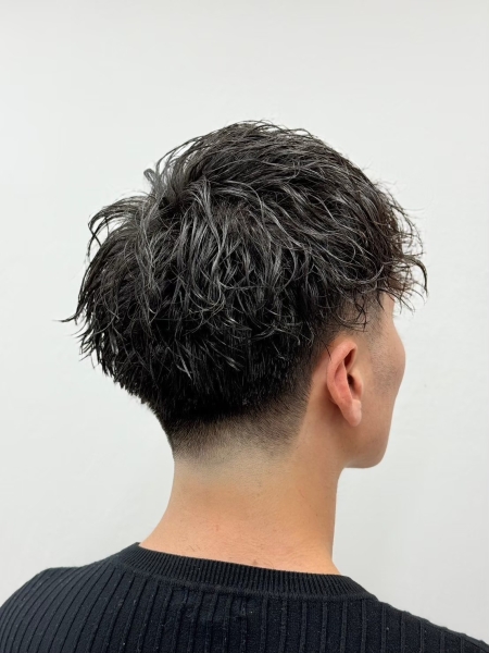 - テーパーフェードはトップの髪とのコントラストが魅力の一つ。長さの差によって立体感や動きが生まれ、スタイリングの自由度も高まります。ワックスやジェルで流すだけでも、セットのしやすさと完成度の高さを実感できます。さらに、髪の長さが徐々に変化するデザインは、横顔や後ろ姿まで美しく見せる効果もあり、さりげないおしゃれ感を演出。