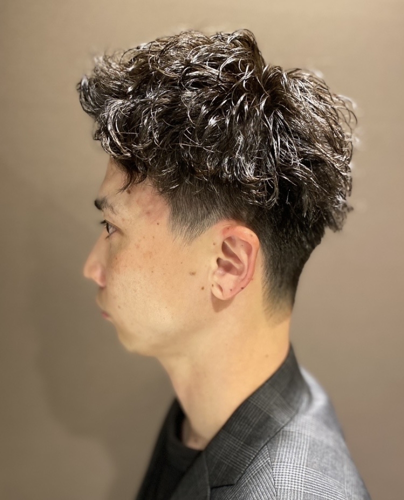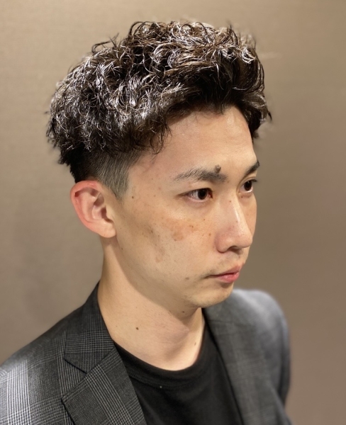 ツーブロックショートにスパイラルパーマで立体感をプラス。動きと軽さのある万能スタイルです。
