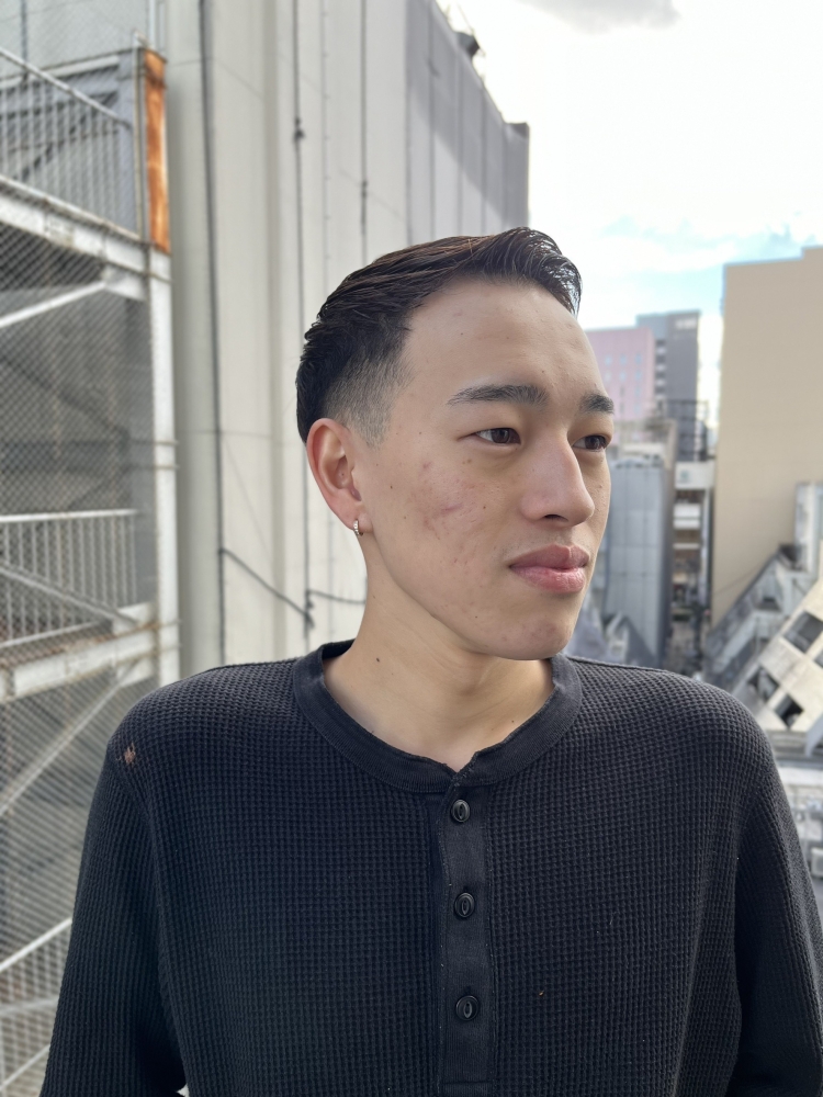 フェードはメリハリのある刈り上げで清潔感が際立ち、フェザーアップは軽い動きと立ち上がりで爽やかさを引き出せるスタイルです。セットはドライヤーで前髪をふわっと立ち上げ、トップを後ろへ流すように乾かし、少量のワックスを毛流れに沿ってなじませるだけで簡単に決まります。