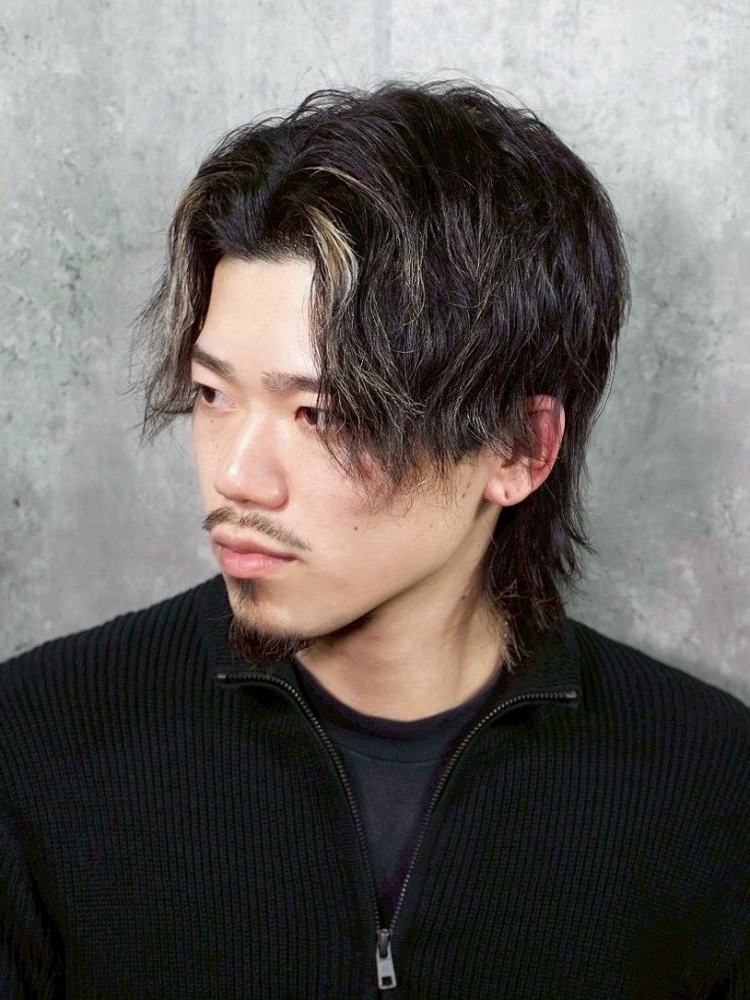 程よく長さを残したウルフベースに、センターパートで大人っぽさをプラス。レイヤーで自然な動きを出しつつ、顔まわりのハイライトが立体感と色気を演出します。どの角度から見てもバランスの良いシルエットが魅力です。