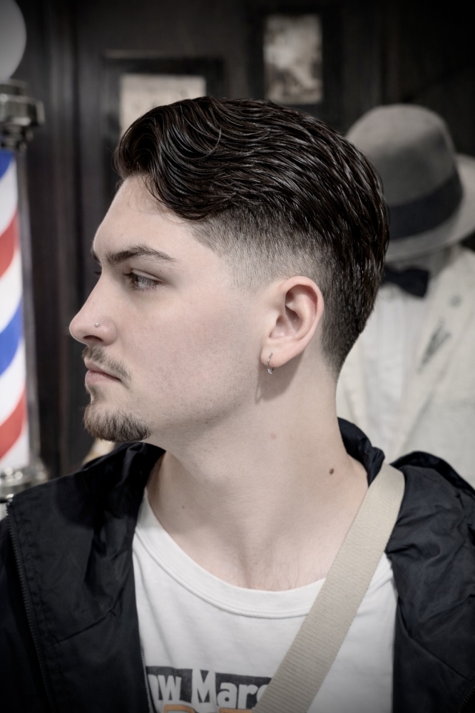 理容室/床屋/メンズカット/バーバースタイル/クラシックヘア/七三分け/オールバック/刈り上げ/外国人風ヘア/大人メンズ/男前スタイル/ヒゲデザイン/シェービング/顔剃り/大阪梅田