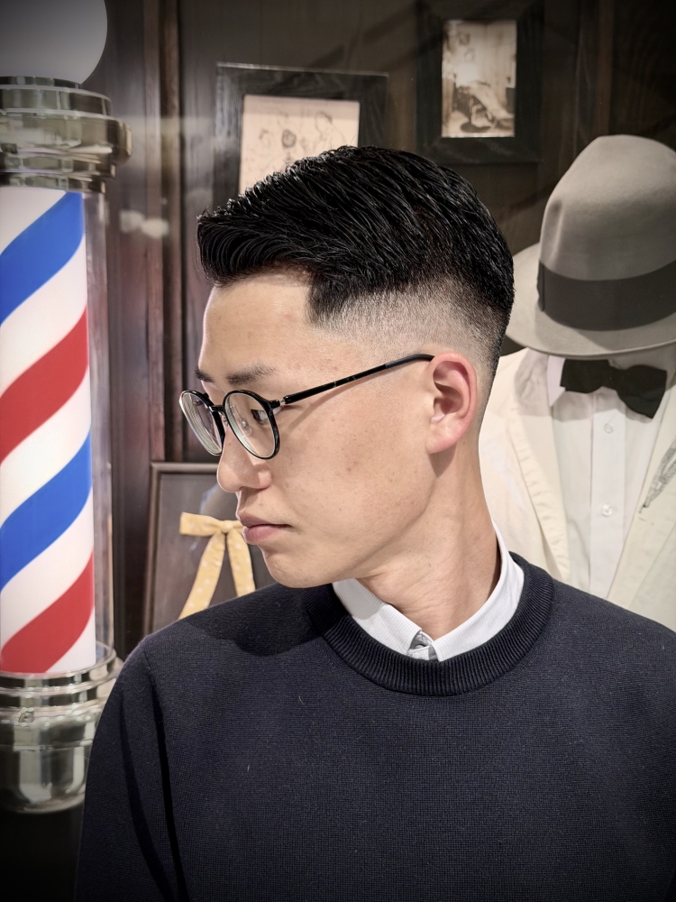 理容室/床屋/メンズカット/バーバースタイル/クラシックヘア/七三分け/オールバック/刈り上げ/外国人風ヘア/大人メンズ/男前スタイル/ヒゲデザイン/シェービング/顔剃り/大阪梅田