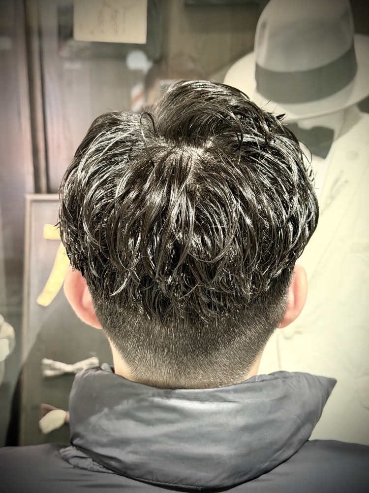 理容室/床屋/メンズカット/バーバースタイル/クラシックヘア/ウェーブヘア/七三分け/刈り上げ/黒髪メンズ/大人メンズ/清潔感/シェービング/顔剃り/大阪梅田/京橋