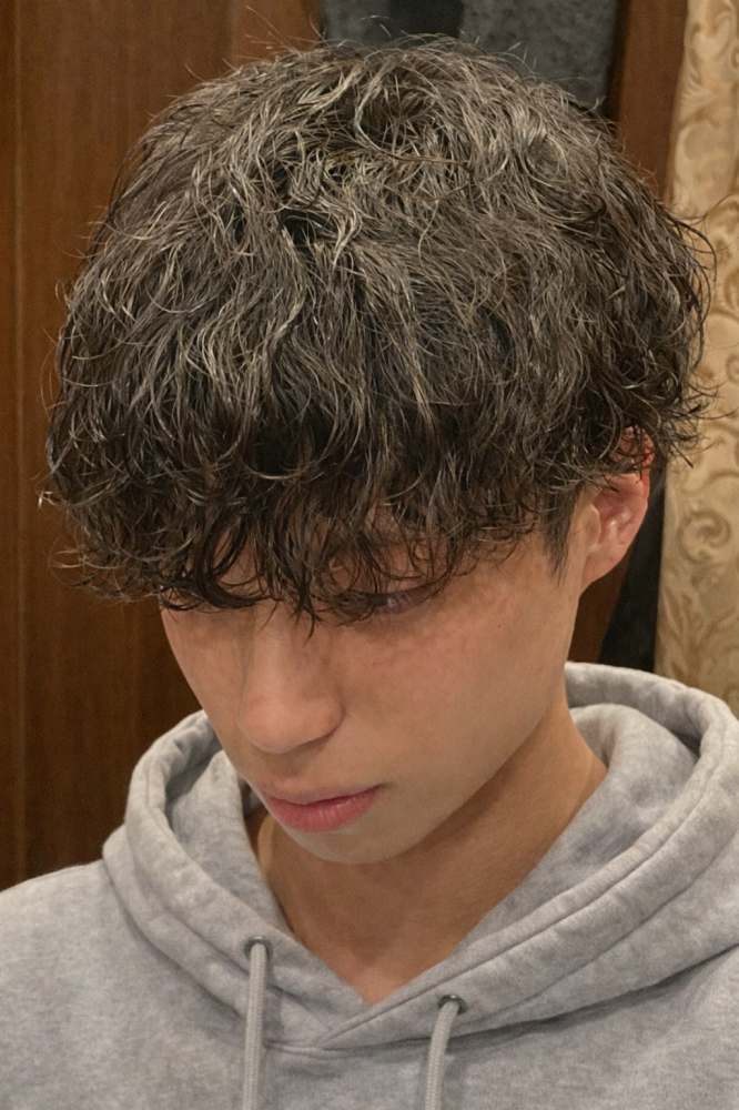 - パーマ カット+パーマ(川崎/メンズカット/フェード/波巻きパーマ/眉毛/センターパート/ニュアンスパーマ)