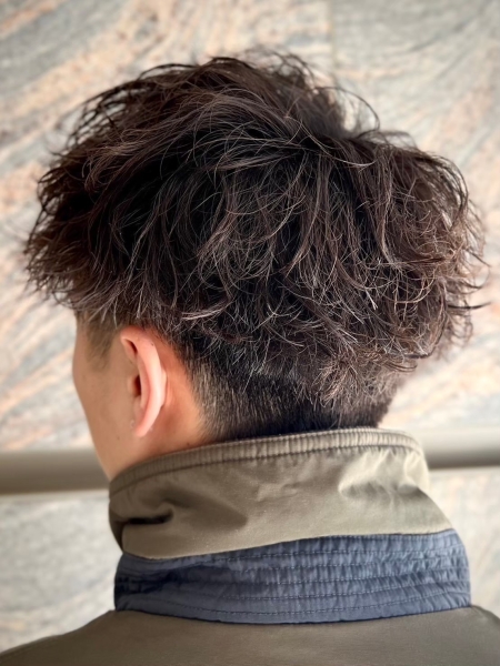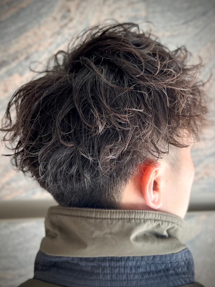 人気のマッシュベースにツイストスパイラルをプラスした王道スタイル。ツーブロックでサイドをすっきりさせることで、全体のシルエットにメリハリが出て重くなりすぎないのがポイントです。
