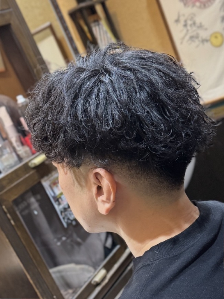 センターに分けてジェルまたはワックスでラフにスタイリング
