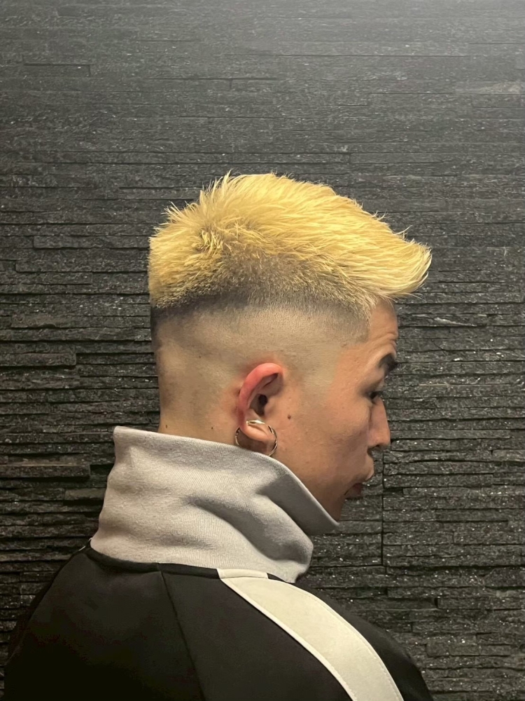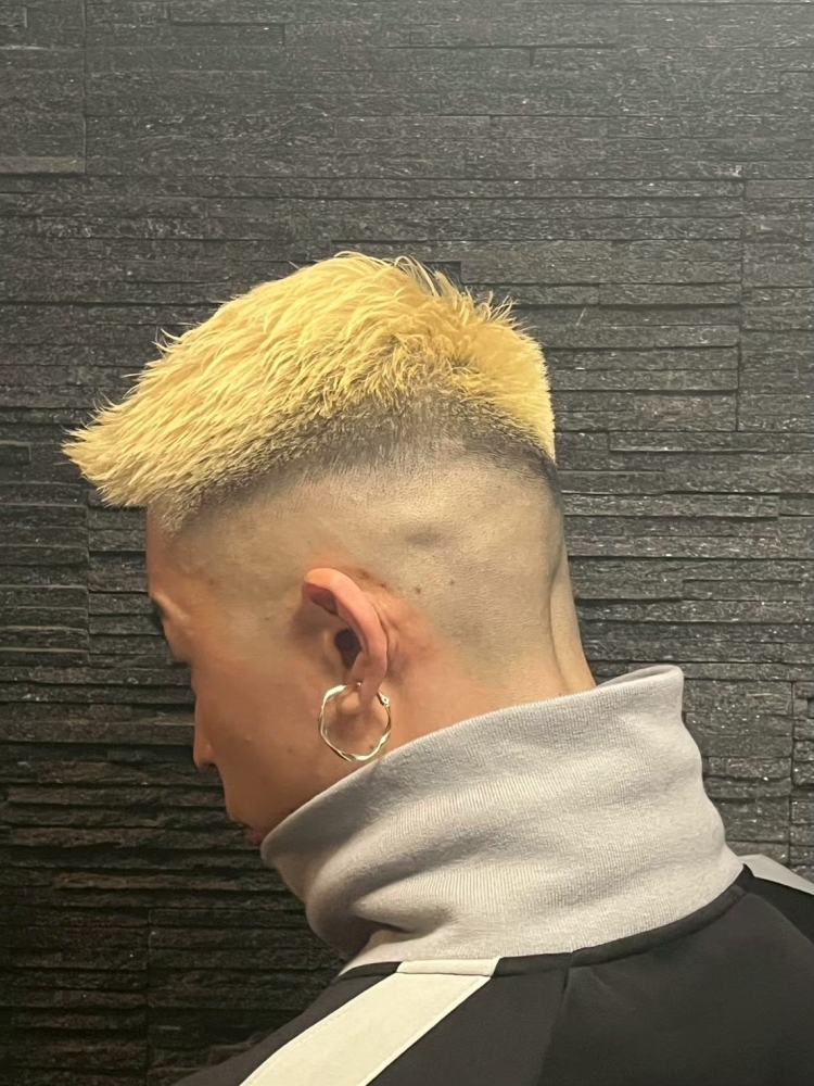 フェザーアップで動きを出すことで、ハイトーンでもやりすぎ感が出ず、ラフで今っぽい仕上がりに。短髪でもしっかり存在感が出せるのがポイントです