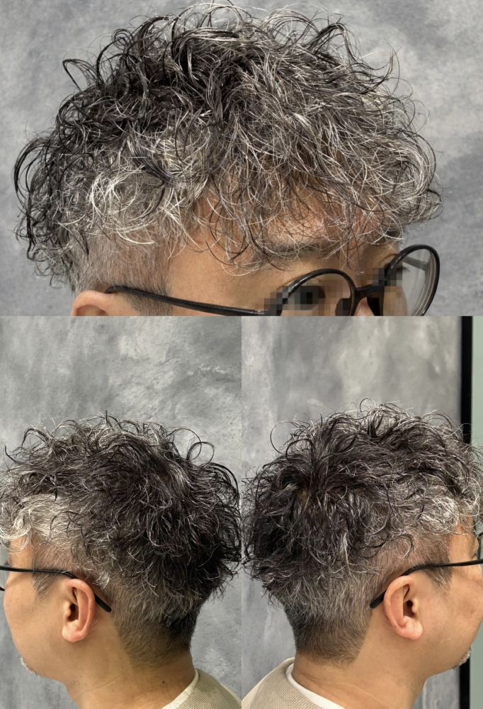 パーマの履歴を活かしながら、さらに動きが出るように再度パーマをプラス。前回のカールを活かしているので、無理のない自然なボリューム感と立体感が出ています。ムースやワックスを揉み込むだけでキマる大人のラフパーマスタイル