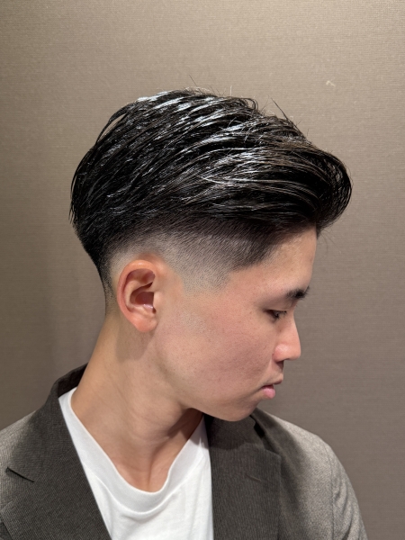 グリースやポマードをなじませて、後ろに流すだけで簡単にキマります。
