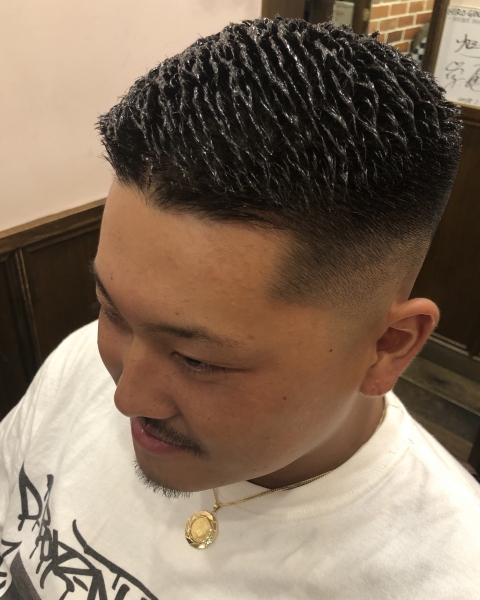 四角めのシルエットにフェードの王道令和パンチスタイル