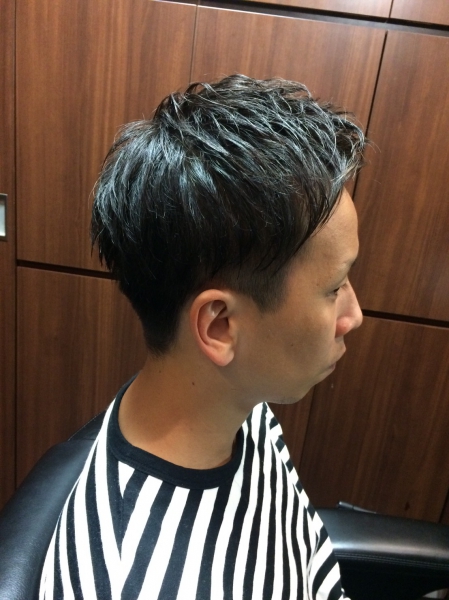 今回のスタイルは比較的年齢が若めのツーブロックスタイルです。王道のスタイルであり、髪の質感によって束の雰囲気が左右されます。後ろをスッキリ刈り上げることによって綺麗な色彩になりかっこよく、全体的に収まりが良くなります。