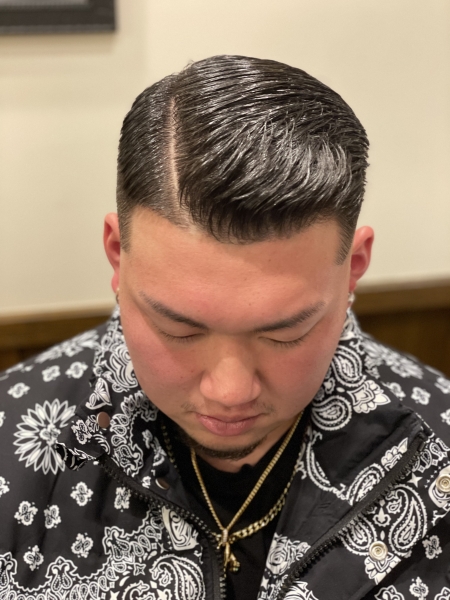 サイドパートで前髪を立ち上げやすく、アイパーで根本を立ち上げます。これだけで簡単です。任せてください。