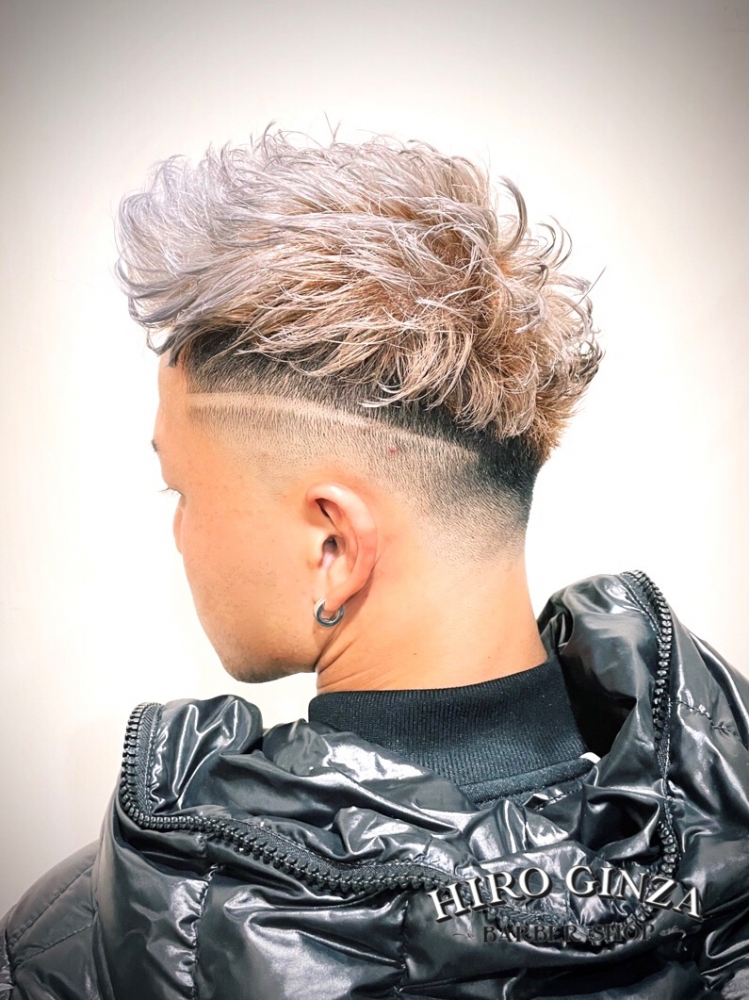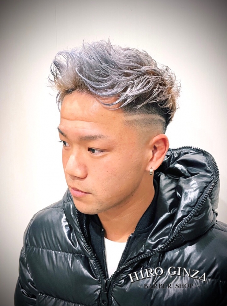 シルバーカラー、スキンフェードにラインをいれた最高にキマるスタイルです。