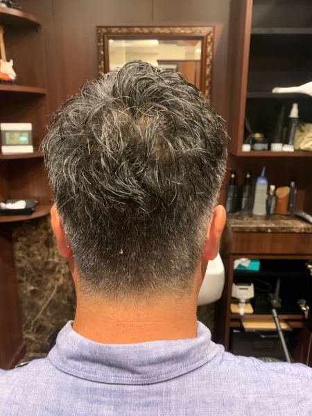 周りはすっきり刈り上げて、前髪が立ち上げやすくボリュームがでやすいように切らせていただました