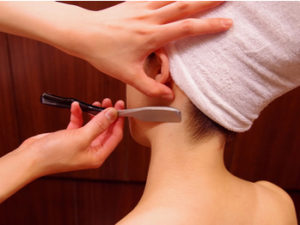 | アロマミストで蒸気をお顔にあてながら、お顔・襟足のシェービングと眉カット、美肌フェイスパックがついたコースです。