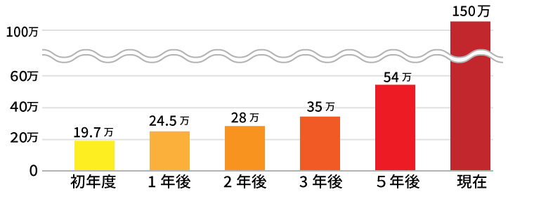 沢山のお客様にご来店していただいているおかげで、毎年、売上は最高記録を更新しています。