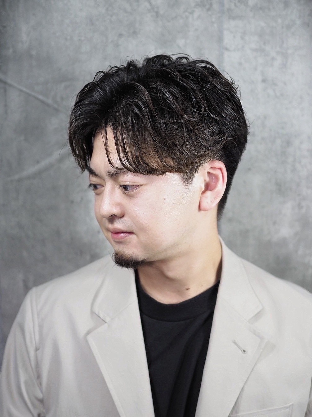 ラルフカールは、程よいカール感とラフな動きを組み合わせた、色気のあるトレンドスタイル。強すぎないカールが自然な立体感を生み、無造作ながら計算された毛流れを演出します。トップはボリュームが出やすく、サイドとバックは重くなりすぎないよう調整することで、全体のシルエットをシャープに。スタイリングはドライ後にワックスやバームをなじませ、毛先をつまむだけで簡単に完成します。抜け感と男らしさを両立した、幅広いシーンで活躍するパーマスタイルです。