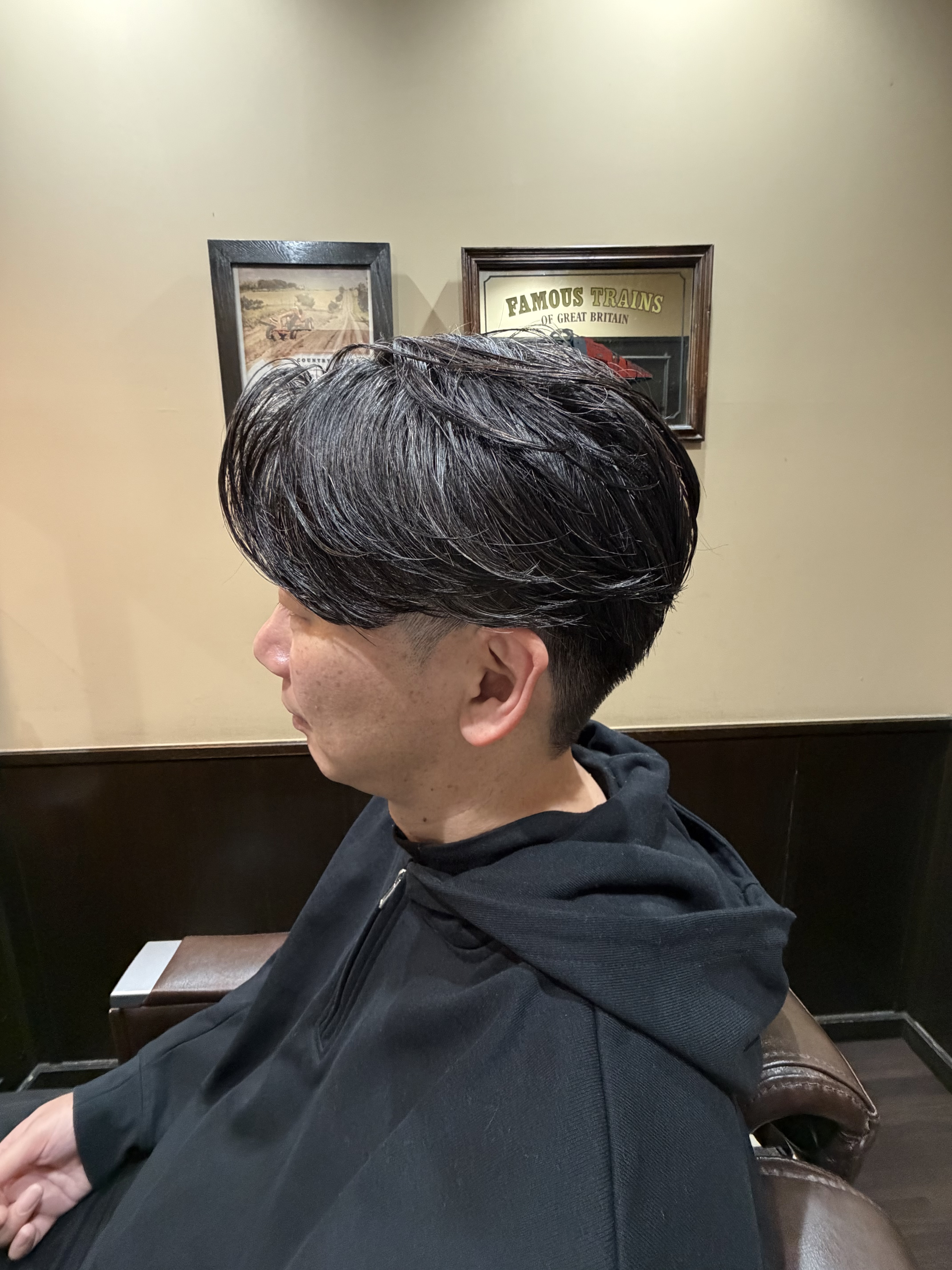 今回のスタイルは、サイドから襟足にかけて綺麗なフェードでグラデーションを作り、トップは自然な動きが出るように仕上げています。刈り上げすぎないフェードなので、きちんと感がありながらも柔らかい印象になるのが特徴です。