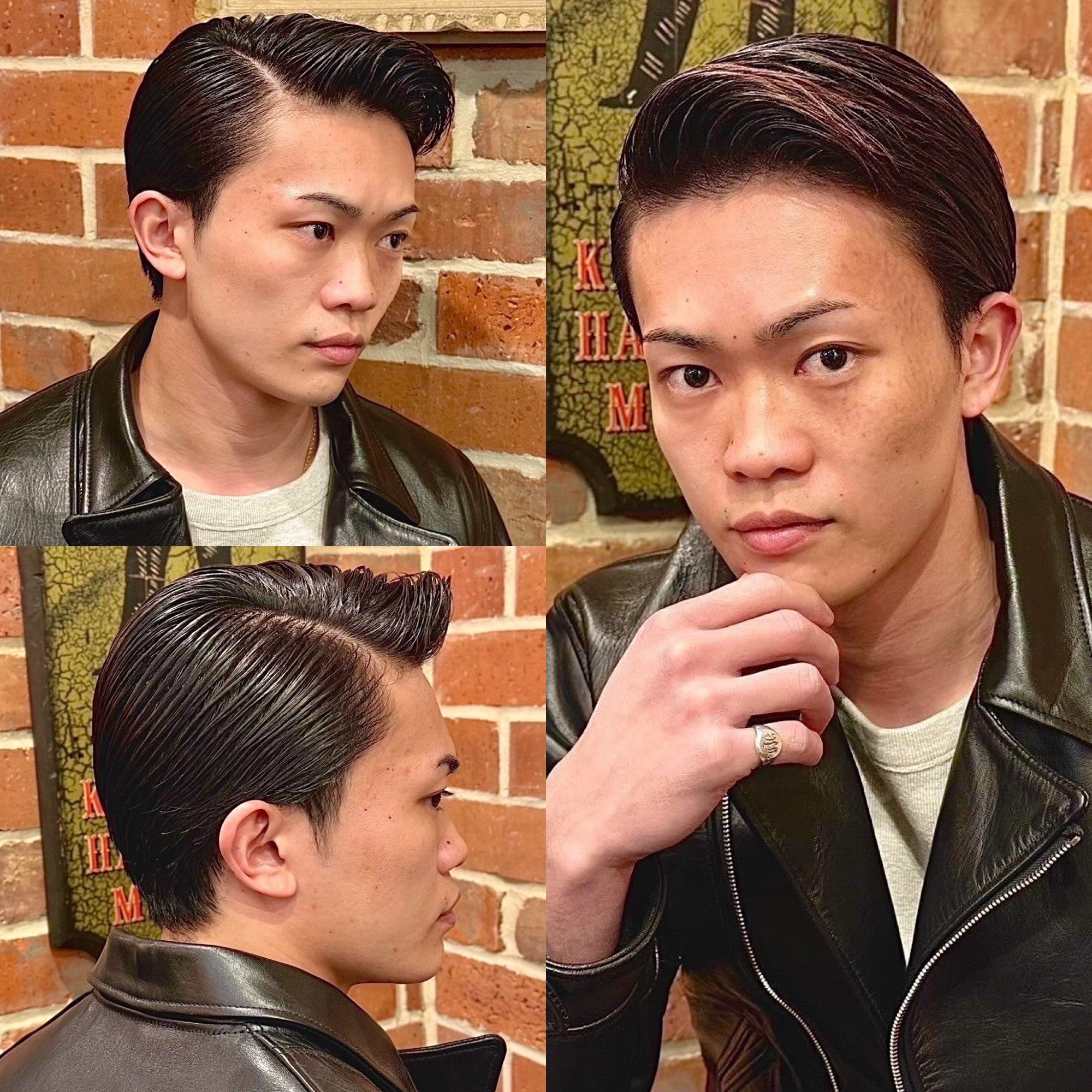スタイリングはジェルやグリースでしっかりツヤを出すのがポイント。コームで流れを整え、前髪を軽く立ち上げるだけでサロン帰りの仕上がりが再現できます。ジャケットやレザーとの相性も抜群で、大人の余裕を感じさせる一押しスタイルです。