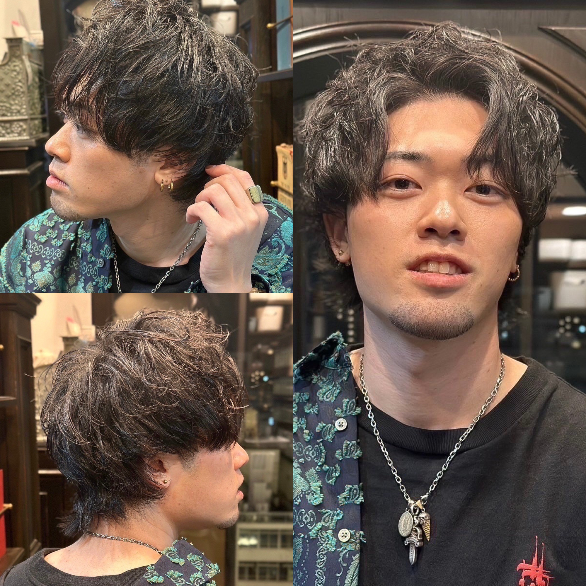 色気と抜け感を両立するウェーブセンターパート×ウルフのモードスタイル