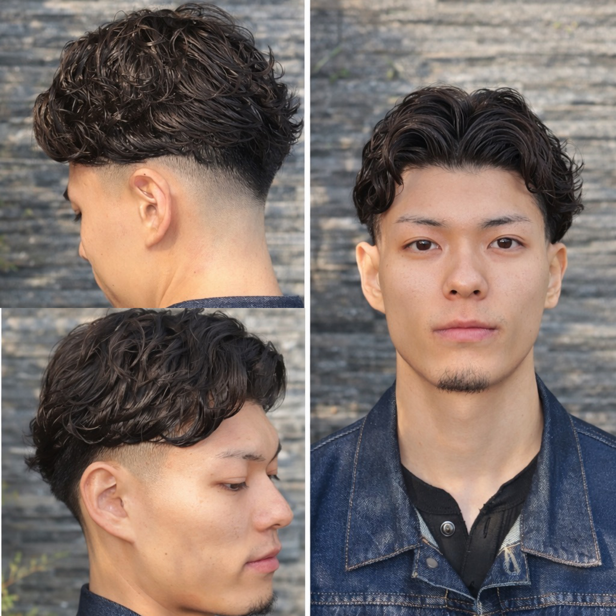 今回ご紹介するスタイルは、自然な動きと清潔感を両立したニュアンスパーマミドルフェードです。