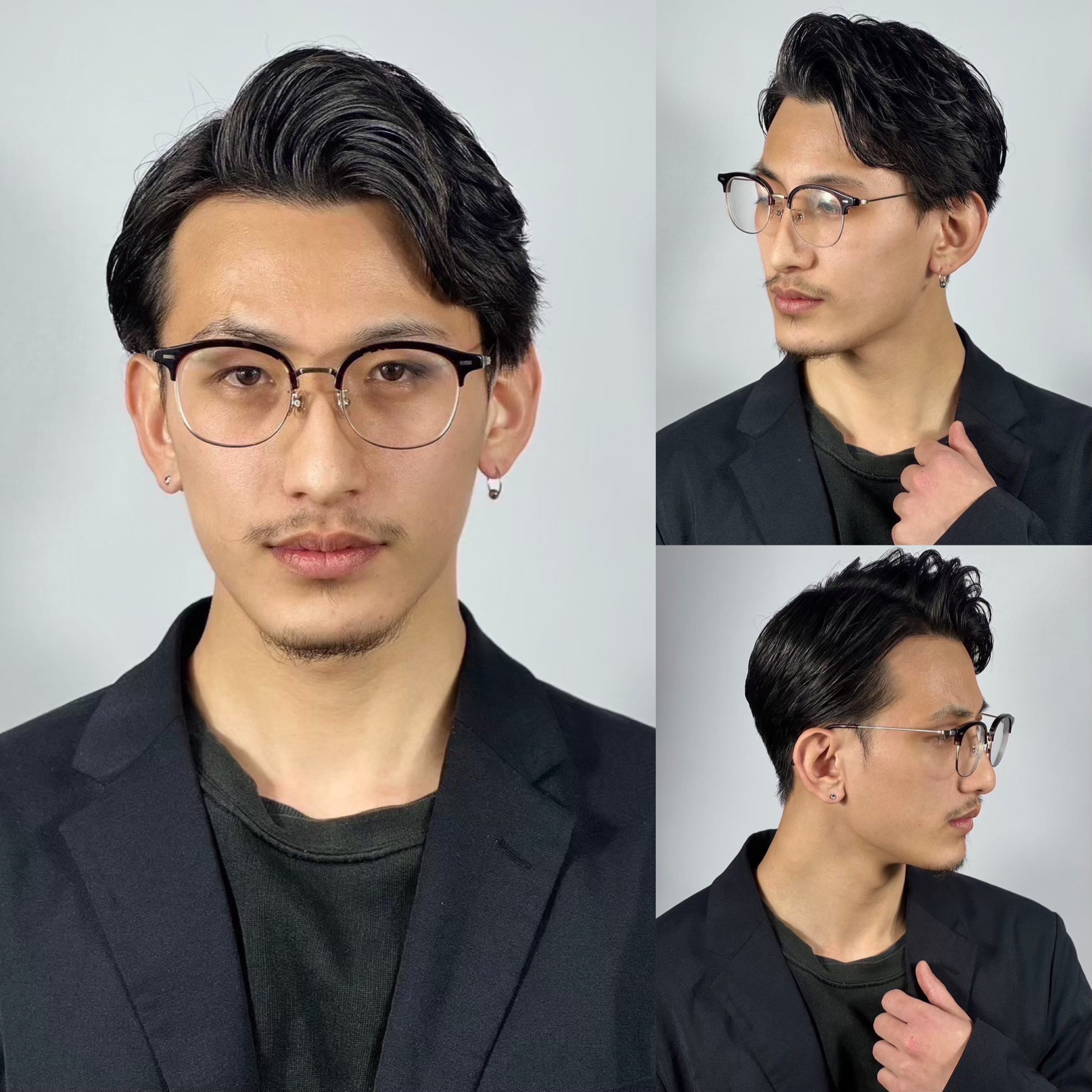 サイドと襟足はタイトに収め、全体のシルエットをコンパクトに調整。横から見たときのラインがきれいに出るので、スーツやジャケットとの相性も抜群です。メガネやヒゲともバランスが取りやすく、落ち着いた大人の雰囲気を演出できます。