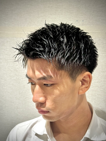 - 「冬の寒さも、坊主フェードで熱く決める。」
