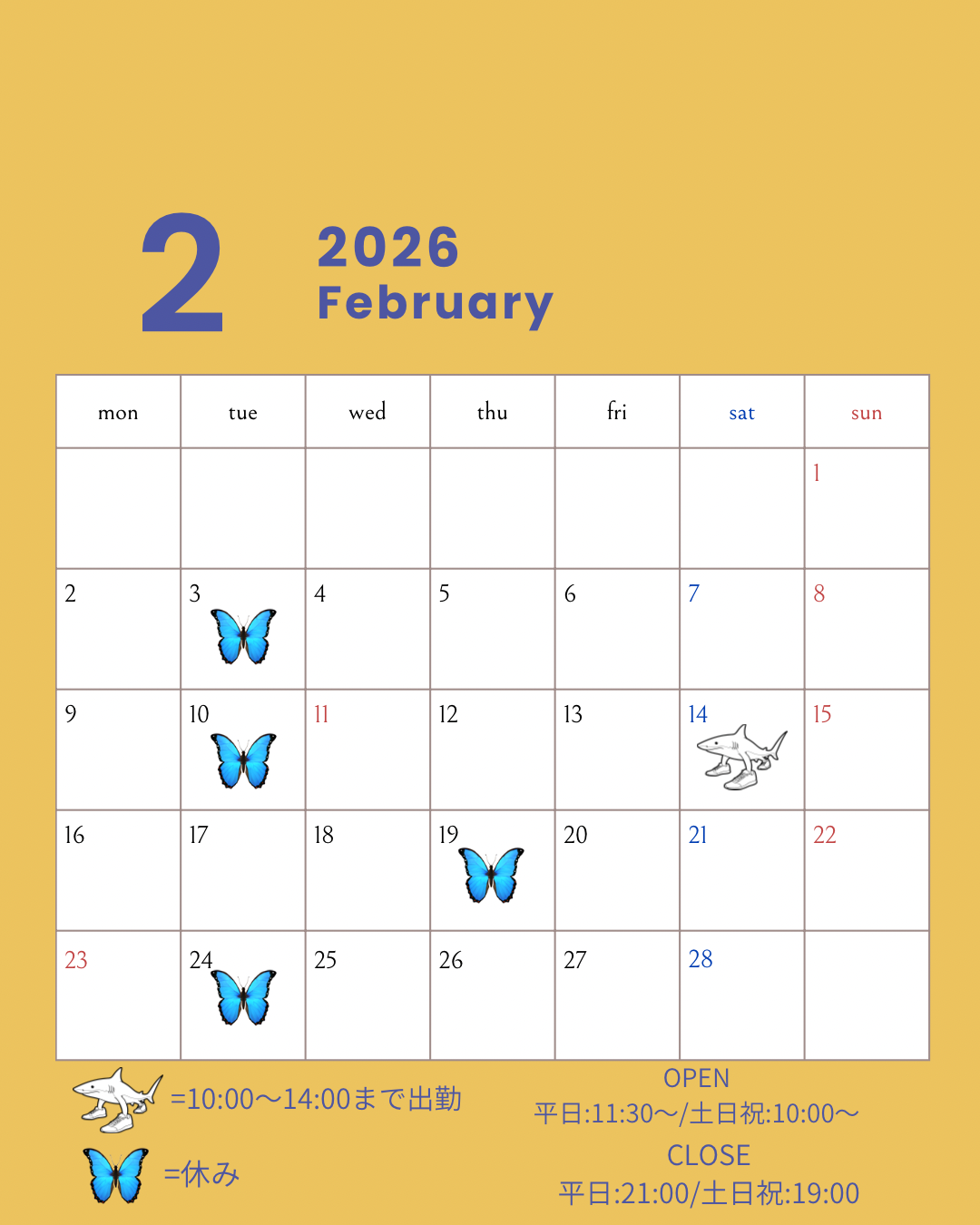 こんにちは!月もあっという間に終わってしまいました!月もまもなく1週間が過ぎようとしてます!!私千葉の2月のシフトをお知らせいたします!!蝶々→お休みを頂いております!サメマーク→10:00~14:00で勤してまります112/14のみ14:00以降お休みを頂いてますのでよろしくお願いします!!!出来る限り皆様を担当したいので是非私の出勤している日に来て頂けると笑顔が増えます!!皆様の沢山のご来店楽しみにお待ちしております!!ヒロ銀座バーバーショップ仙台本店店長千葉央