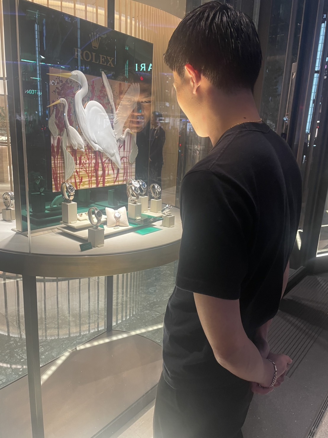 この間,スタッフの田中くんと散歩していたら,彼はロレックスの前で止まって,「いつか僕この700万の時計買います」と僕に熱い思いで語ってくれました!