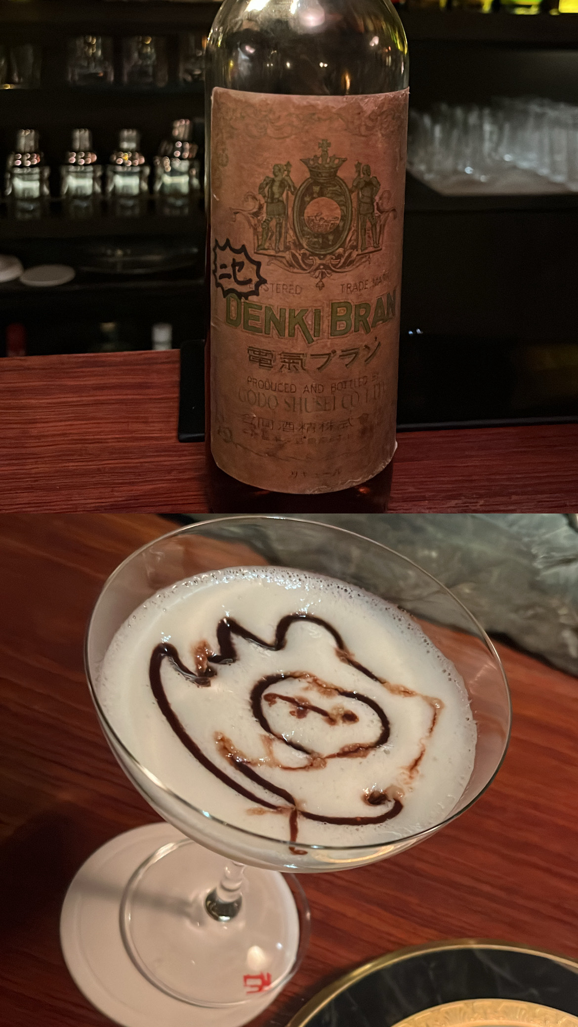 作品内に出てくるお酒である偽電気ブランと作品内に登場する下鴨矢三郎イメージのカクテルをいただきました!カクテルには矢三郎も描いてくださりました!こちらでもお店の方にいろいろお話していただいて楽しく過ごせました(^^)♪