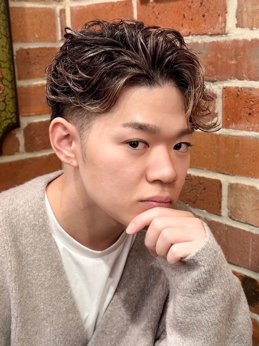 特に、画像のような動きのあるスタイルは、重くなりがちな冬のファッションに軽快さと色気をプラスしてくれます。今回ご紹介したいのは、今最も人気で、スタイリングのしやすさも抜群の「波巻きパーマ」です。このパーマは、まるで波打つような動きが特徴で、ワックスを馴染ませるだけで簡単に立体感と束感を出すことができます。朝の忙しい時間でも、たった数分でキマる再現性の高さが、ON/OFF問わずカッコよさを求める20代のあなたにぴったり。そして、サイドやバックをスッキリと刈り上げた「ツーブロック」と組み合わせれば、清潔感がありながらもエッジの効いたメリハリのあるスタイルが完成します。髪がペタッとしやすい、セットがすぐに崩れてしまうといった冬の髪の毛の悩みを、この波巻きパーマとツーブロックの組み合わせで一気に解決しませんか?