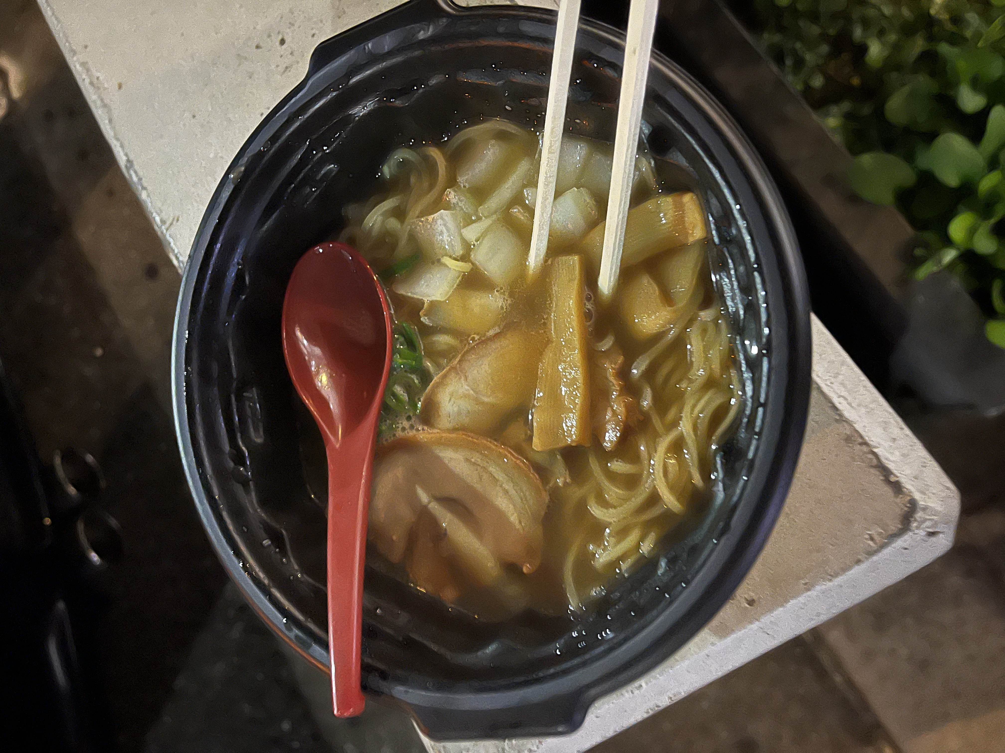 深夜の高速、湯気とともに現れる小さなご褒美 高速道路を走っていると、不思議と腹が減る。特に深夜帯になると、選択肢は一気に少なくなる。コンビニ飯か、眠気覚ましの缶コーヒーか。でも、大井パーキングエリアにはもう一つの選択肢がある──自動販売機のラーメンだ。 正直、最初は「まあ、話のタネに一杯」と軽い気持ちでボタンを押した。でもフタを開けた瞬間、湯気と一緒にしょうゆの香りがふわっと上がってきて、思わず立ち止まる。あの香り、意外と侮れない。