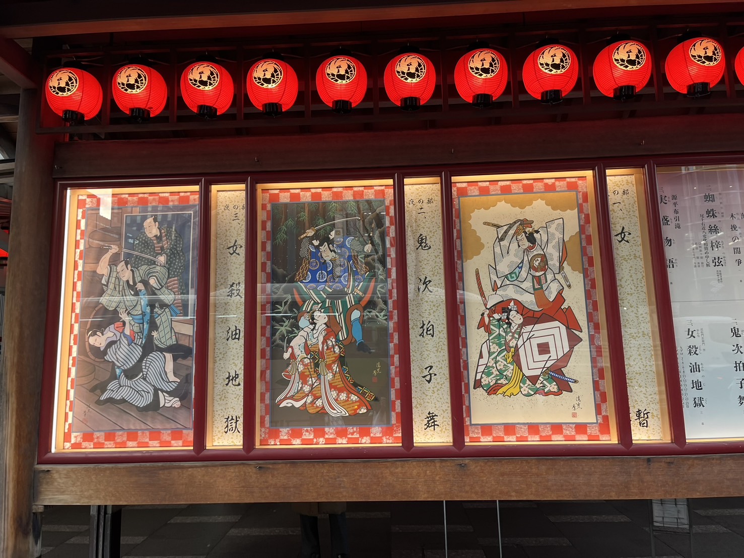 昼の部は當午歳歌舞伎賑(正札附根元草摺・萬歳・木挽の闇爭)・蜘蛛絲梓弦・実盛物語の上演です!昼の部は特に蜘蛛絲梓弦での尾上右近さんの八変化がすごくて!ずっとわくわくしっぱなしでした!また実盛物語を昼は1番楽しみにしていたのですが、源平の話が大好きなので最高な時間でした(^^)