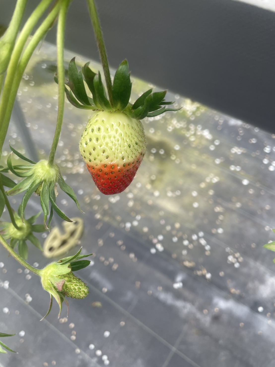 そんな中撮った写真,こちらは完璧に熟していないイチゴです!