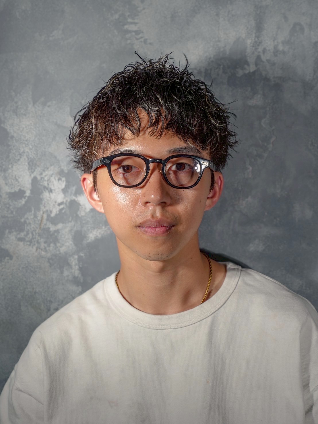 アイロンパーマをベースにした濡れパンは、短髪でも自由自在に動きを出せるのが最大の魅力です。直毛で横が膨らんでしまう悩みも、サイドをスッキリ抑えることで解消でき、毎朝のセットもジェルやグリースを馴染ませるだけで一瞬で完成します。そこに繊細なメッシュを入れることで、単色では出せない立体感と軽やかさが加わります。黒髪ベースにさりげない明るさを足すだけで、お顔立ちがパッと明るく見え、冬の重たくなりがちなファッションにも絶妙なアクセントを添えてくれます。