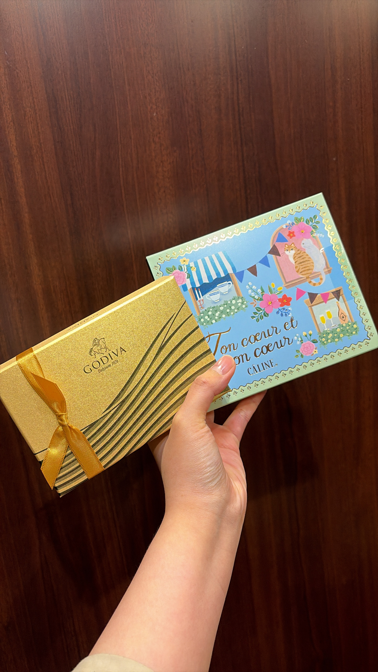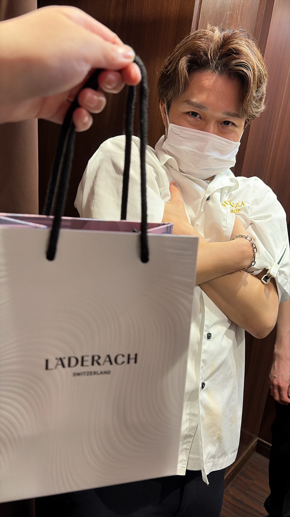 まず店長の山口さんからは当店から数秒歩いたところにあるチョコレート屋さんのチョコレートをもらいました!ご褒美チョコレートな感じのチョコなので自分ではまだ買ったことなかったので嬉しかったです!ちなみにスイスのチョコらしくどれも味がしっかり感じられて美味しくてちまちま食べてます(笑)