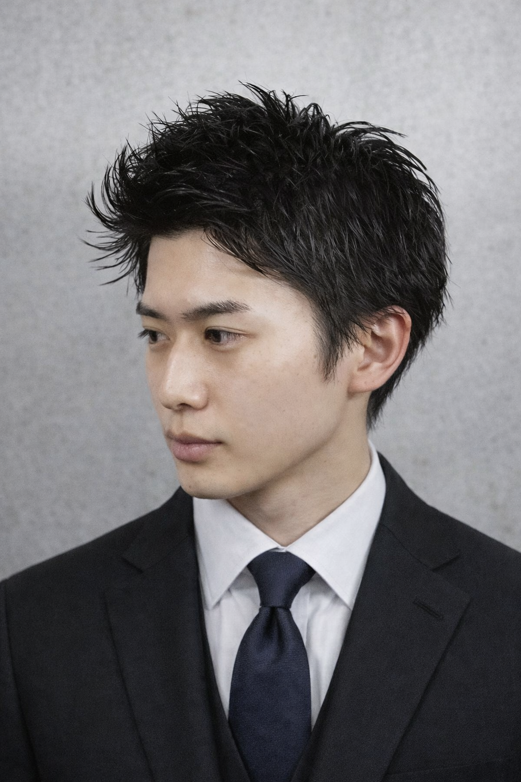 トップの立ち上がり、サイドの収まり、襟足の持ちまで意識しています。