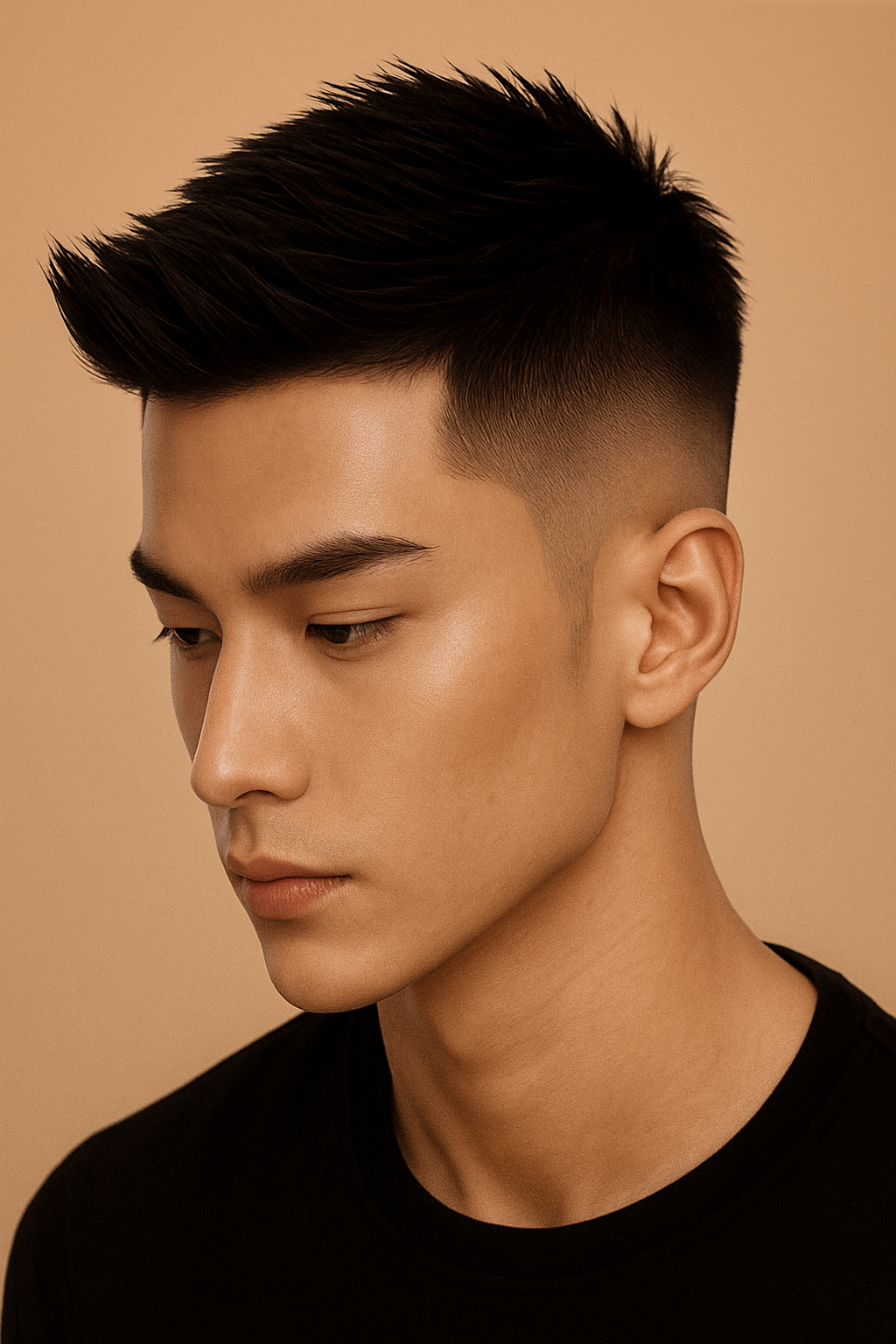 兩側與後方:線條乾淨俐落,讓臉部輪廓更立體。頂部:保留比兩側長一些的長度,大約 3–5 公分,頭髮向前上方梳理,帶有自然的立體感。整體風格:清爽、俐落,給人乾淨帥氣的印象。適合臉型偏圓或方形的人,可以拉長臉部比例。日常打理簡單,只需少量定型產品(如啞光髮蠟、髮泥)即可維持造型。適合場合:上班、正式場合很穩重。日常生活也顯得精神有型。👉 簡單來說,就是一款 耐看、百搭、提升氣質的短髮造型。