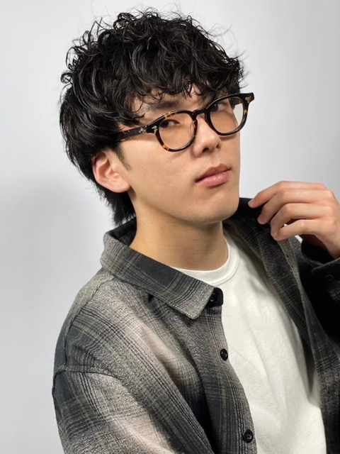 サイドを控えめなツーブロックにしつつ、刈り上げずにナチュラルに馴染ませたパーマスタイル。