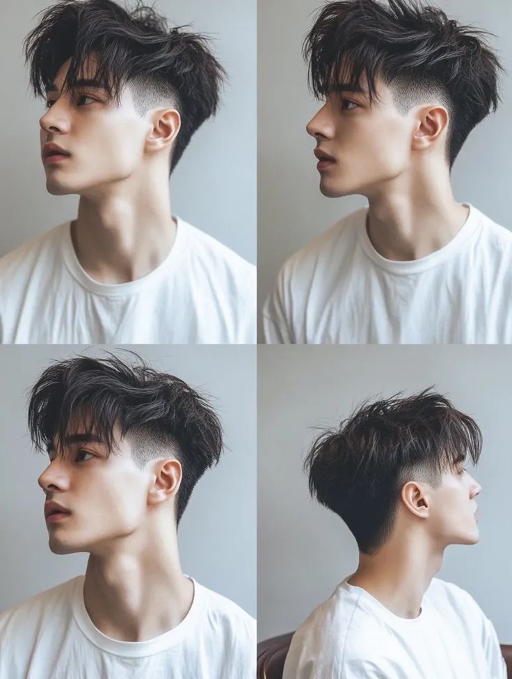 這款髮型是一種 時尚層次剪裁(Layered Undercut),結合了 漸層推剪(Fade) 和 紋理感造型(Textured Styling),適合希望展現俐落與潮流感的男士。以下是這款髮型的特點: