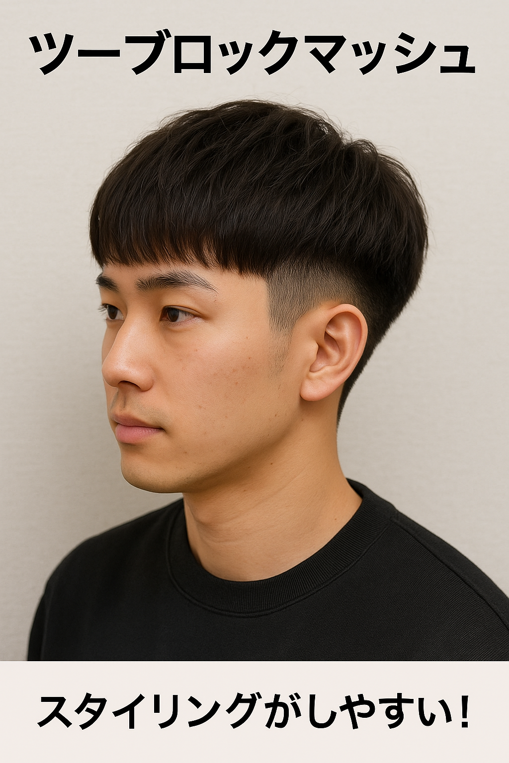 サイドをすっきり刈り上げ、トップはナチュラルな丸みを残した王道マッシュスタイル。清潔感とトレンド感を両立できる万能ヘアです。 スタイリングはドライヤーで軽く形を作って、少量のワックスをなじませるだけでOK!ビジネスにもプライベートにもハマる人気スタイルです。 「重すぎないマッシュ」「清潔感を出したい方」におすすめ